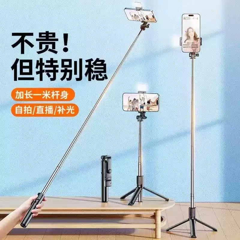 叠品A21P2025新款金属多功能补光自拍杆三脚架遥控拍照神器手机直播支架360°旋转拍照抖音蓝牙便携式防抖