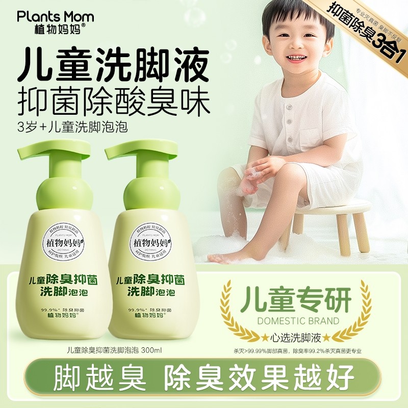 植物妈妈儿童洗脚液除臭杀菌抑菌去真菌脚臭汗臭脚克星泡脚液泡泡
