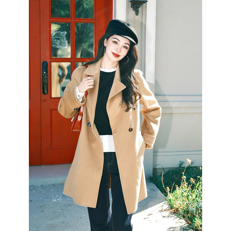 反季双面羊毛大衣女中长款2025新款西装领双排扣宽松显瘦毛呢外套