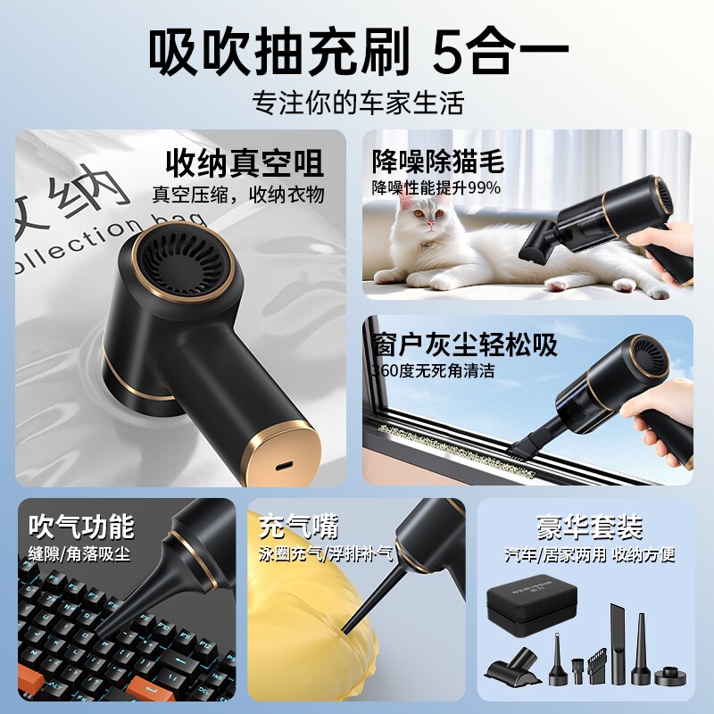 车载吸尘器大吸力无线手持五合一2025新款多功能大功率车用家用