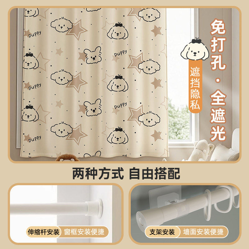 免打孔窗帘强遮光门帘阳台客厅隔断帘遮阳防摔出租房遮挡全遮光