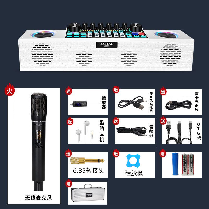 SY6声卡音响一体机户外直播设备无线麦克风全套手机唱K歌家庭ktv