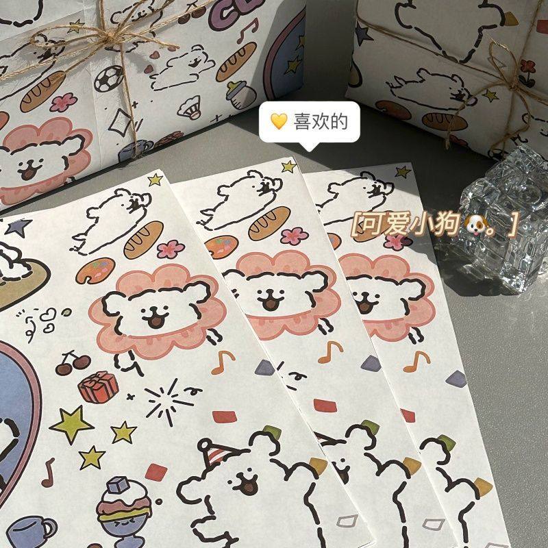线条小狗ins风高颜值包装纸大尺寸DIY卡通礼品礼物鲜花礼物打包纸