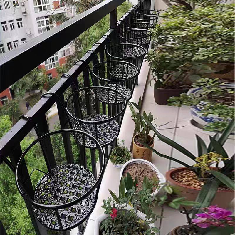 栏杆花架阳台花架置物架大号吊兰悬挂挂式铁艺花盆托架绿萝花架