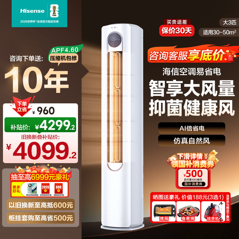海信空调3匹柜机新一级能效变频家用立式客厅柜式冷暖官方旗舰店