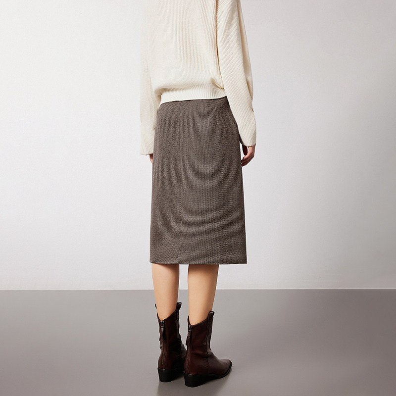 Navigare意大利小帆船千鸟格通勤半身裙女春季复古中长款开叉裙子