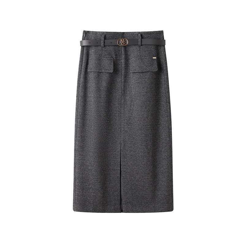 COCOBELLA设计感高腰通勤OL遮胯半身裙西装裙过膝毛呢长裙HS613-2