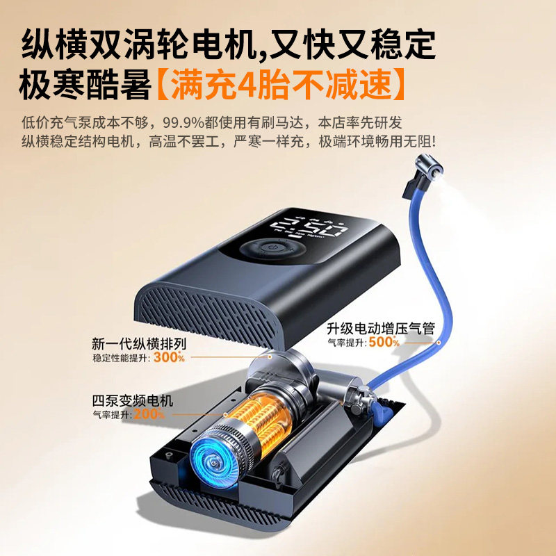 车载充气泵便携式汽车用电动打气筒氮气轮胎带测胎压小型自动加气
