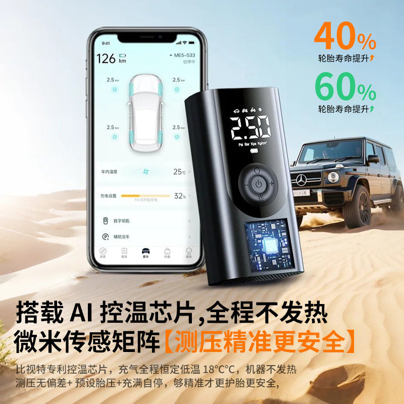 比视特车载无线充气泵便携式汽车用电动打气筒小轿车轮胎车用加气