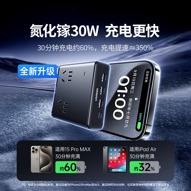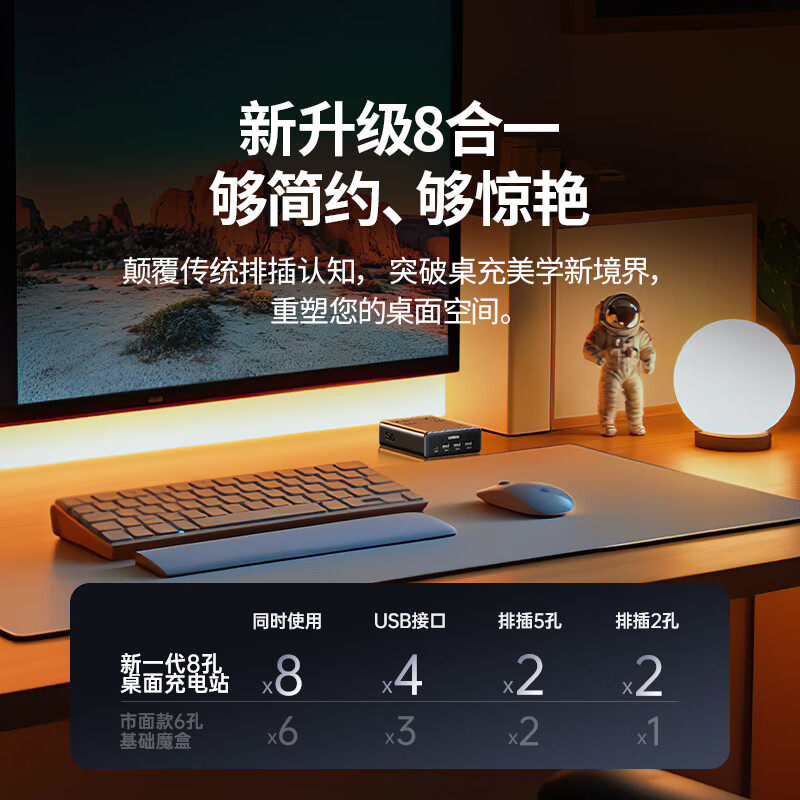 绿联30W桌面充电插排魔方插座多功能插座转换器家用带usb口插线板