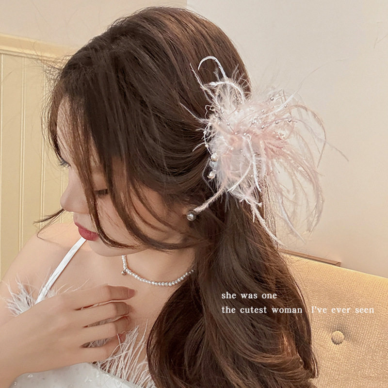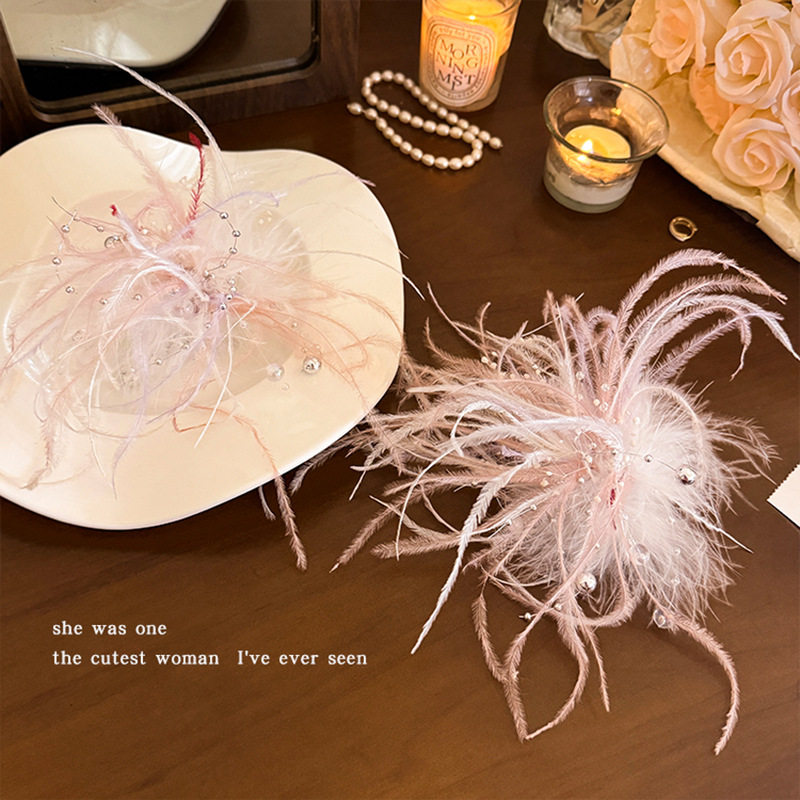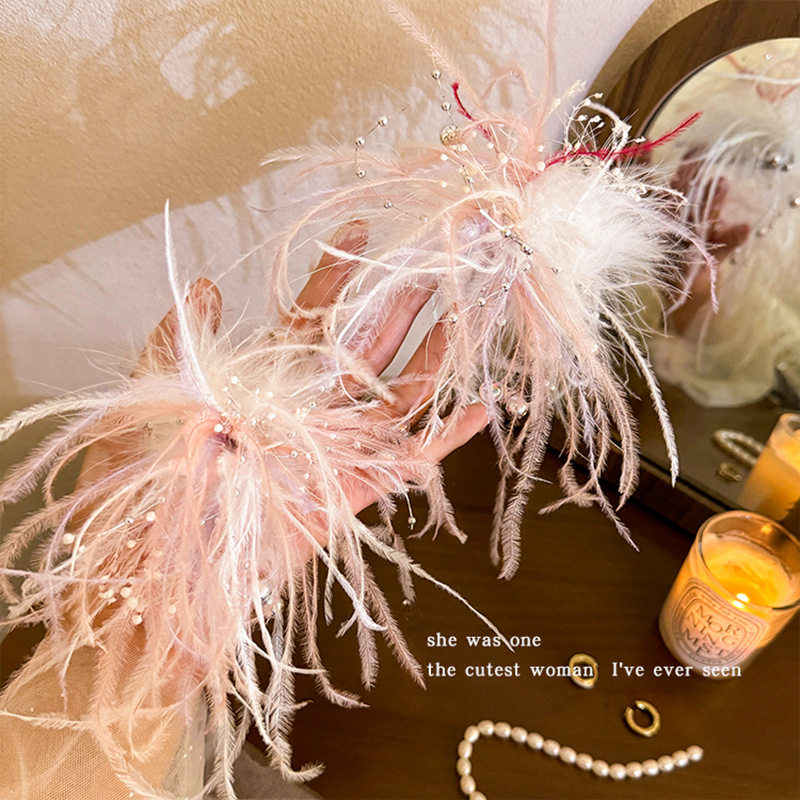 烟花羽毛发夹超仙氛围感唯美新娘发饰甜美气质边夹ins风拍照配饰