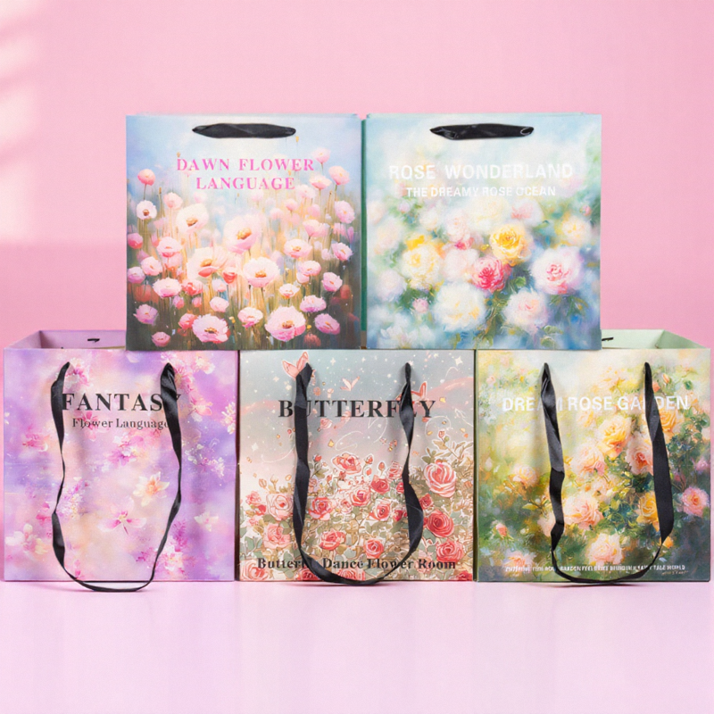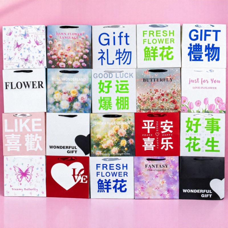 网红鲜花礼品袋鲜花包装手提袋批发伴手礼正方形手提袋
