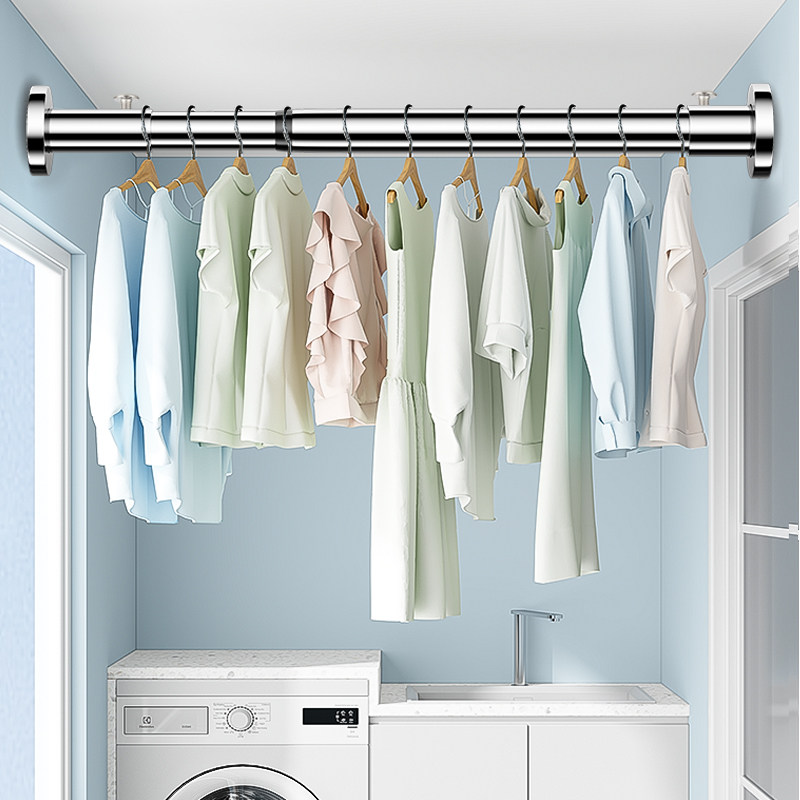 打孔晾衣杆不锈钢伸缩杆浴帘杆挂衣杆阳台晒衣杆一根可伸缩衣柜