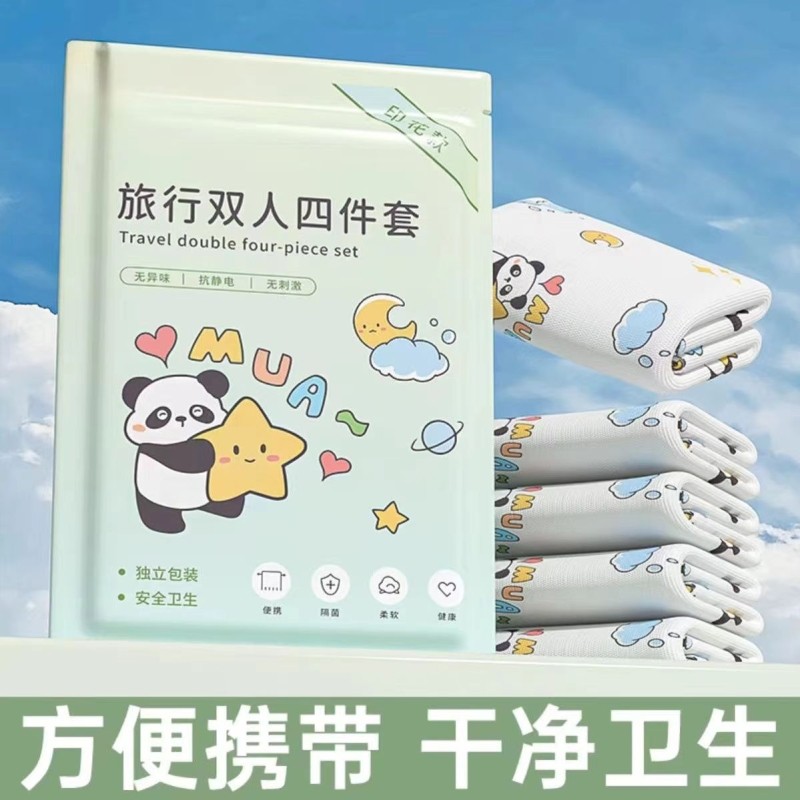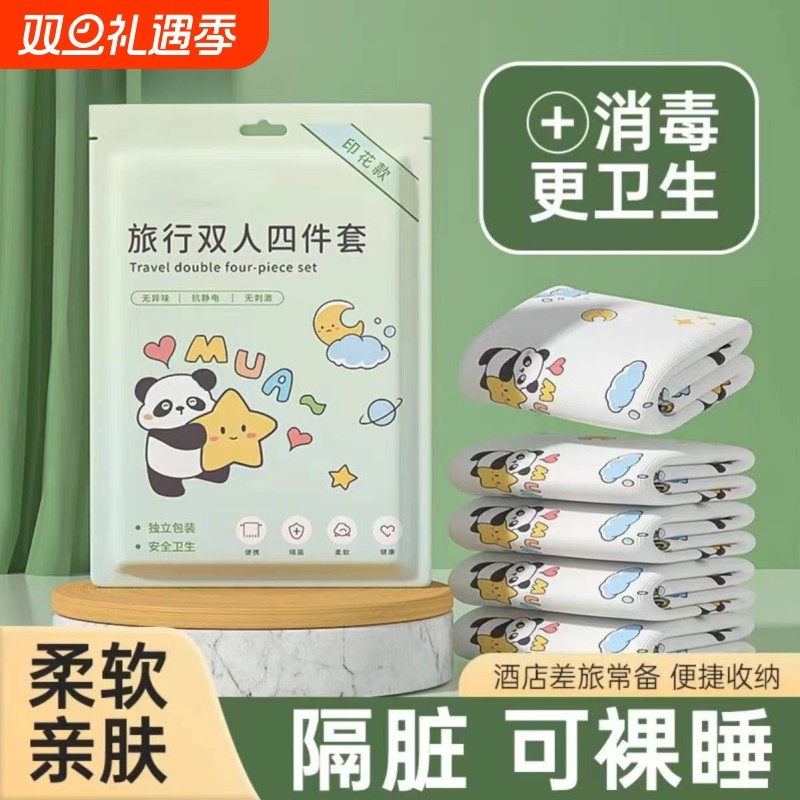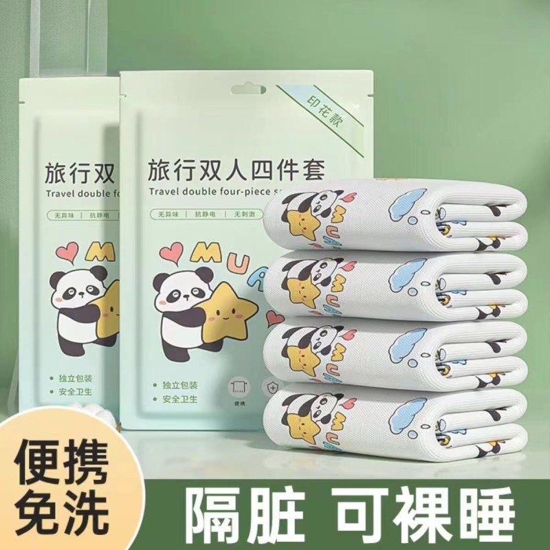 一次性旅行床单被罩枕套卡通旅游四件套酒店用品双人隔脏睡袋灭菌
