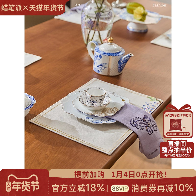 蜡笔派复古田园餐垫现代轻奢氛围感紫藤餐厅餐桌布艺垫子隔热垫