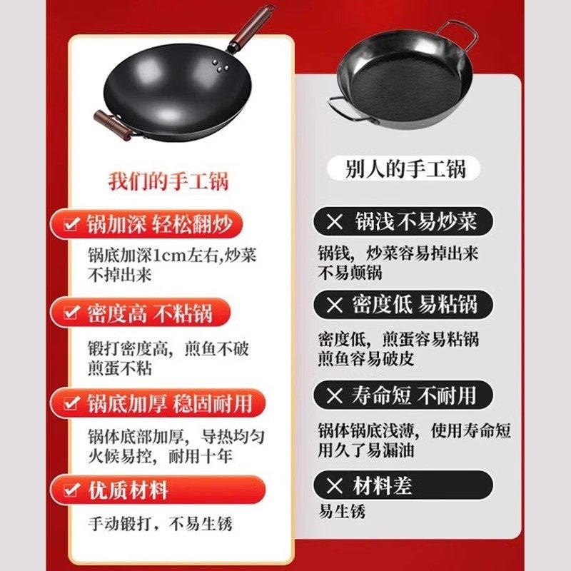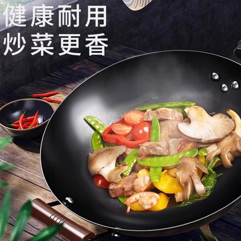 章丘炒菜锅传统铁锅官方旗舰老式炒锅家用不粘锅无涂层燃气灶适用