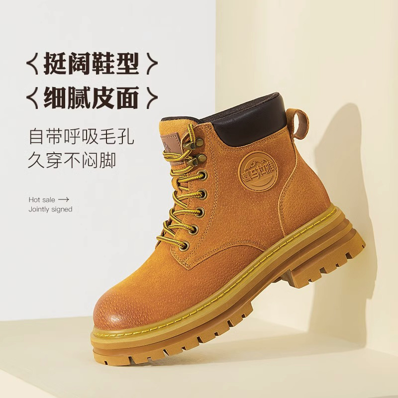 外贸工厂尾货真皮厚底增高马丁靴女秋季户外登山大黄靴休闲工装靴