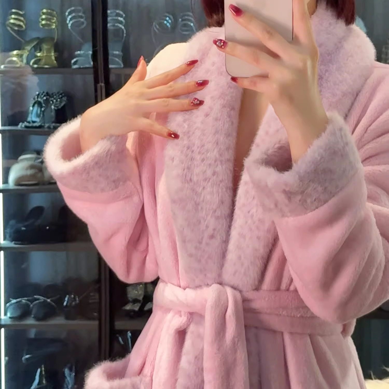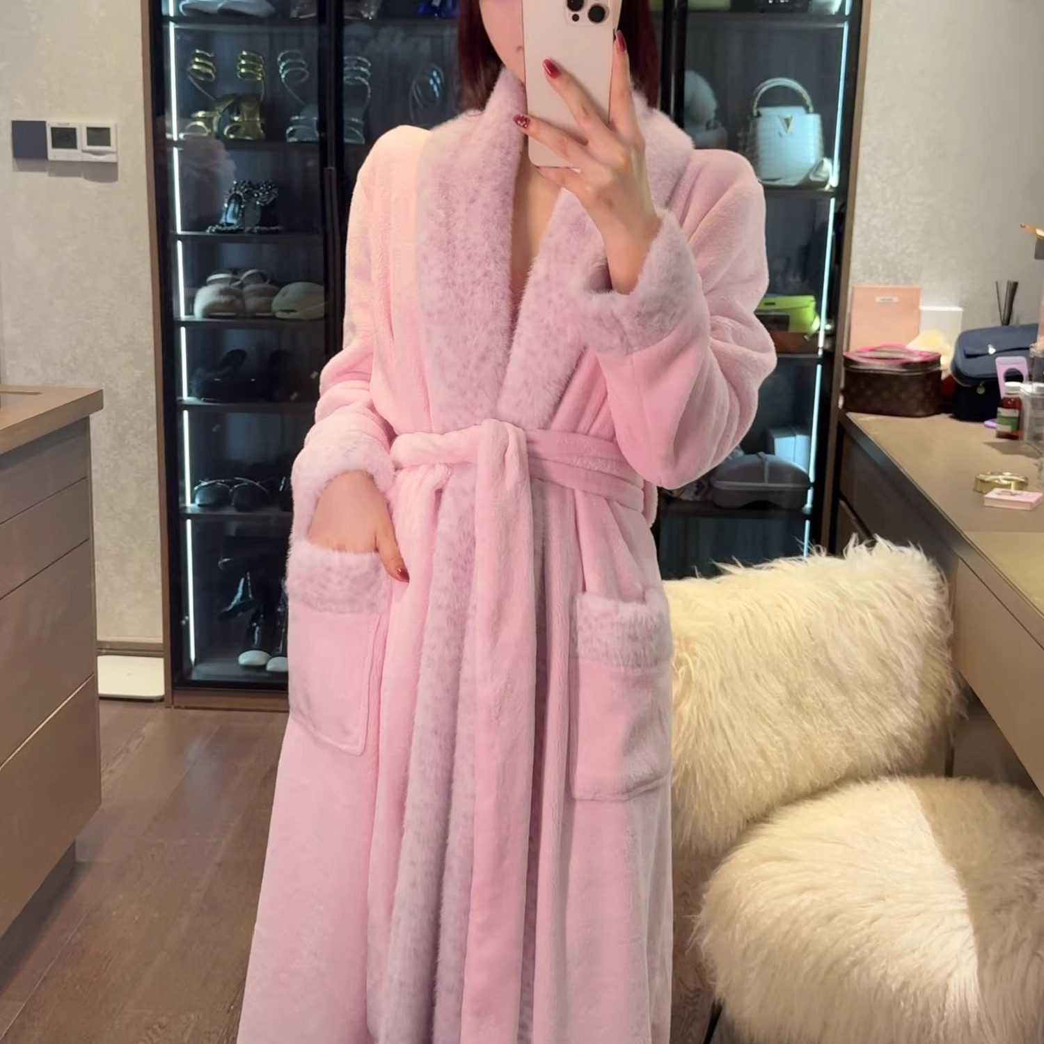 珊瑚绒睡袍女2025秋冬季中长款浴袍加厚加绒睡衣法兰绒家居服女冬