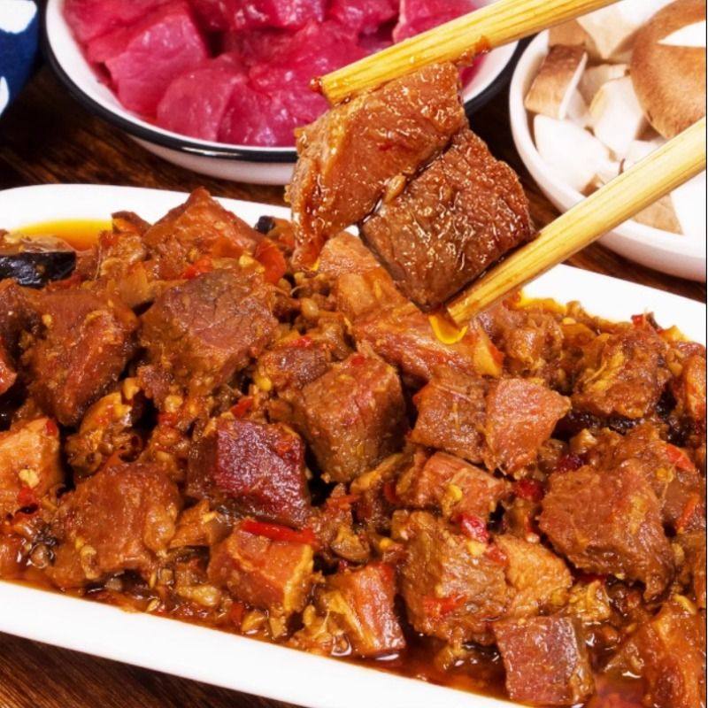 大块牛肉酱香辣牛肉手工切粒特产零食真空熟食即食原切拌面拌饭下
