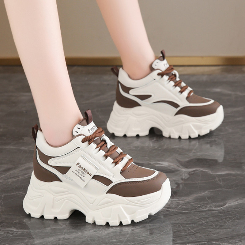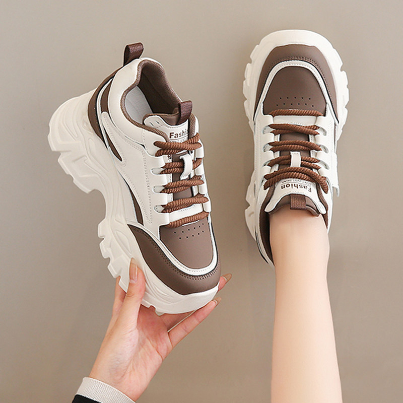 女鞋2025新款秋冬季老爹鞋增高小个子厚底皮面休闲运动鞋百搭爆款