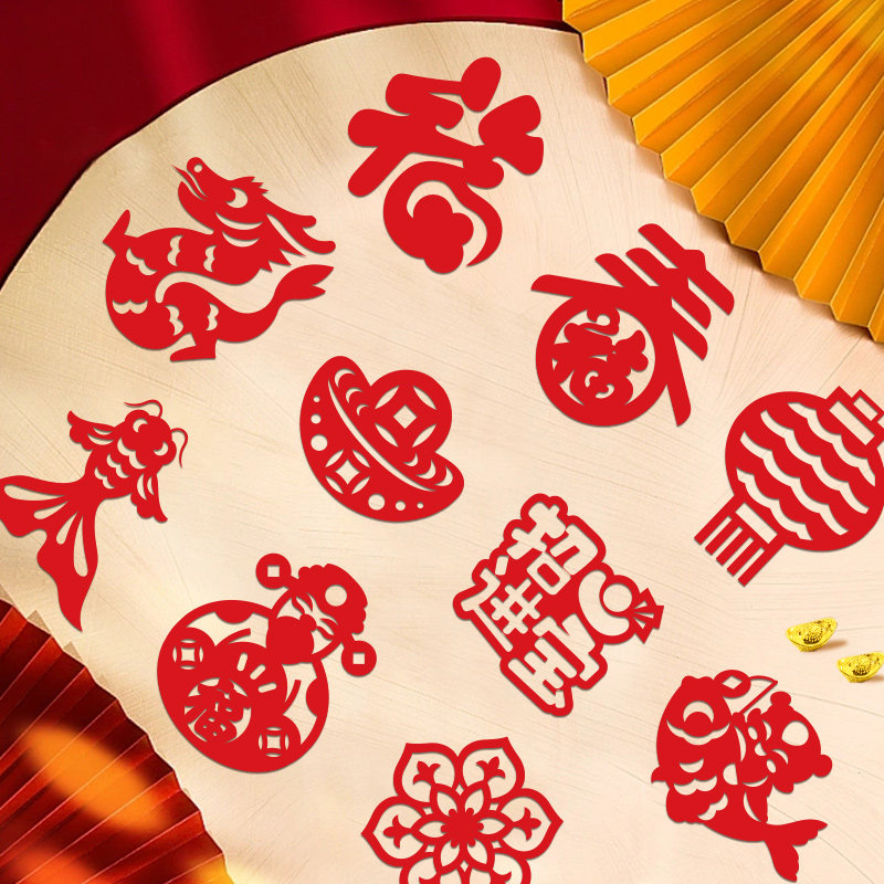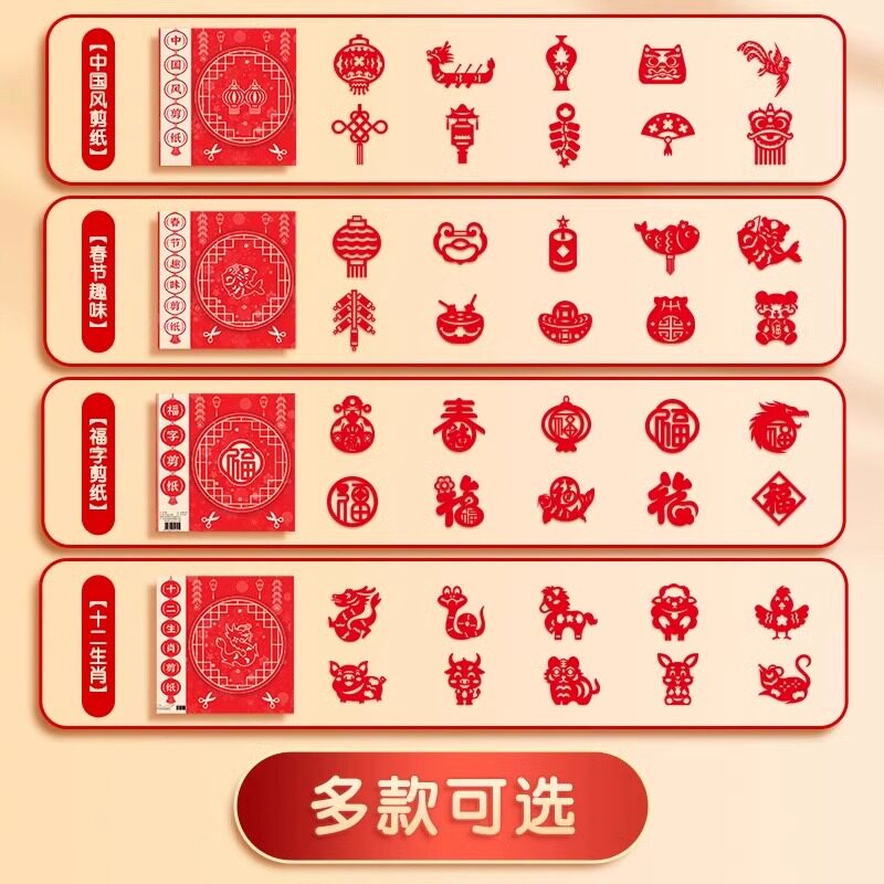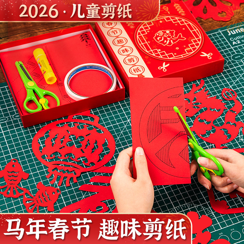 窗花剪纸儿童手工纸剪纸窗花diy元旦节新年2026年马年春节专用纸张小学生幼儿园传统国风图案底稿半成品折纸