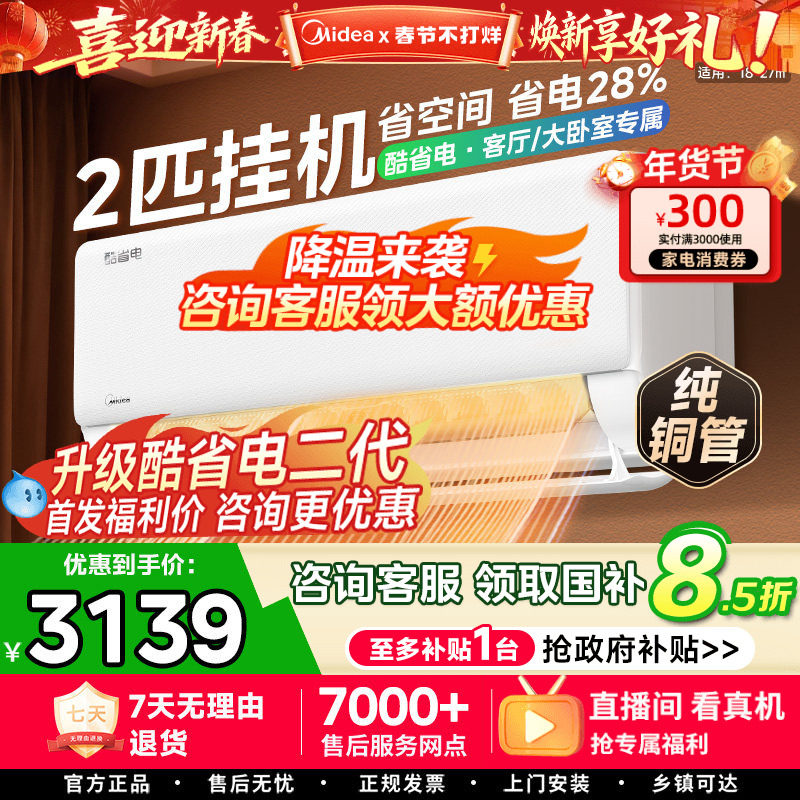 美的空调酷省电二代大1.5匹1匹一级能效变频冷暖家用挂机官方正品