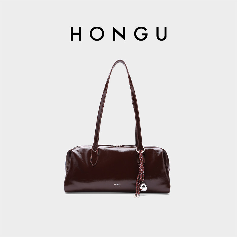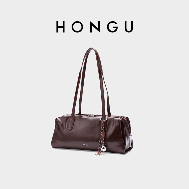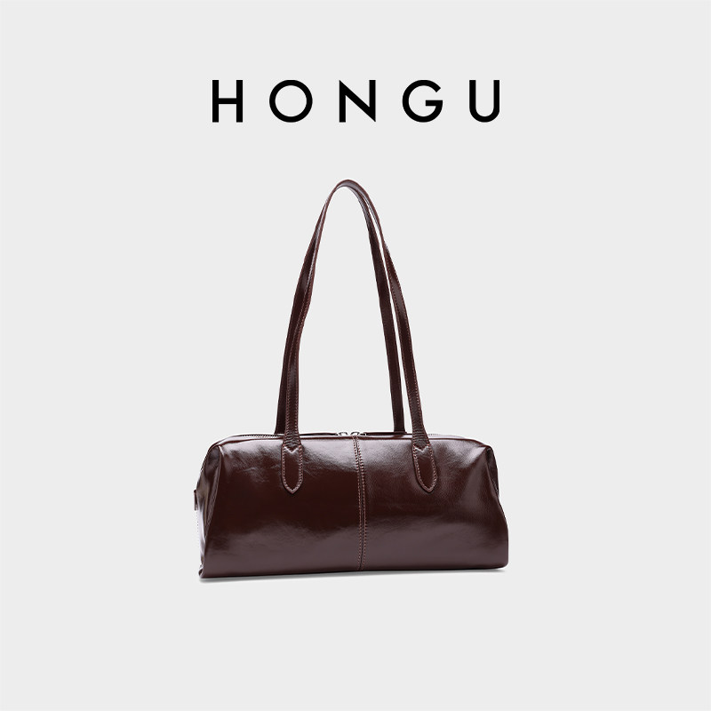 红谷包包女2026新款质感真皮单肩腋下包通勤大容量保龄球包女士包