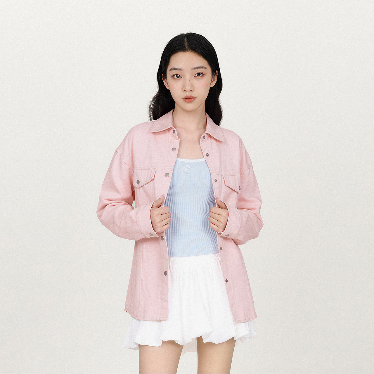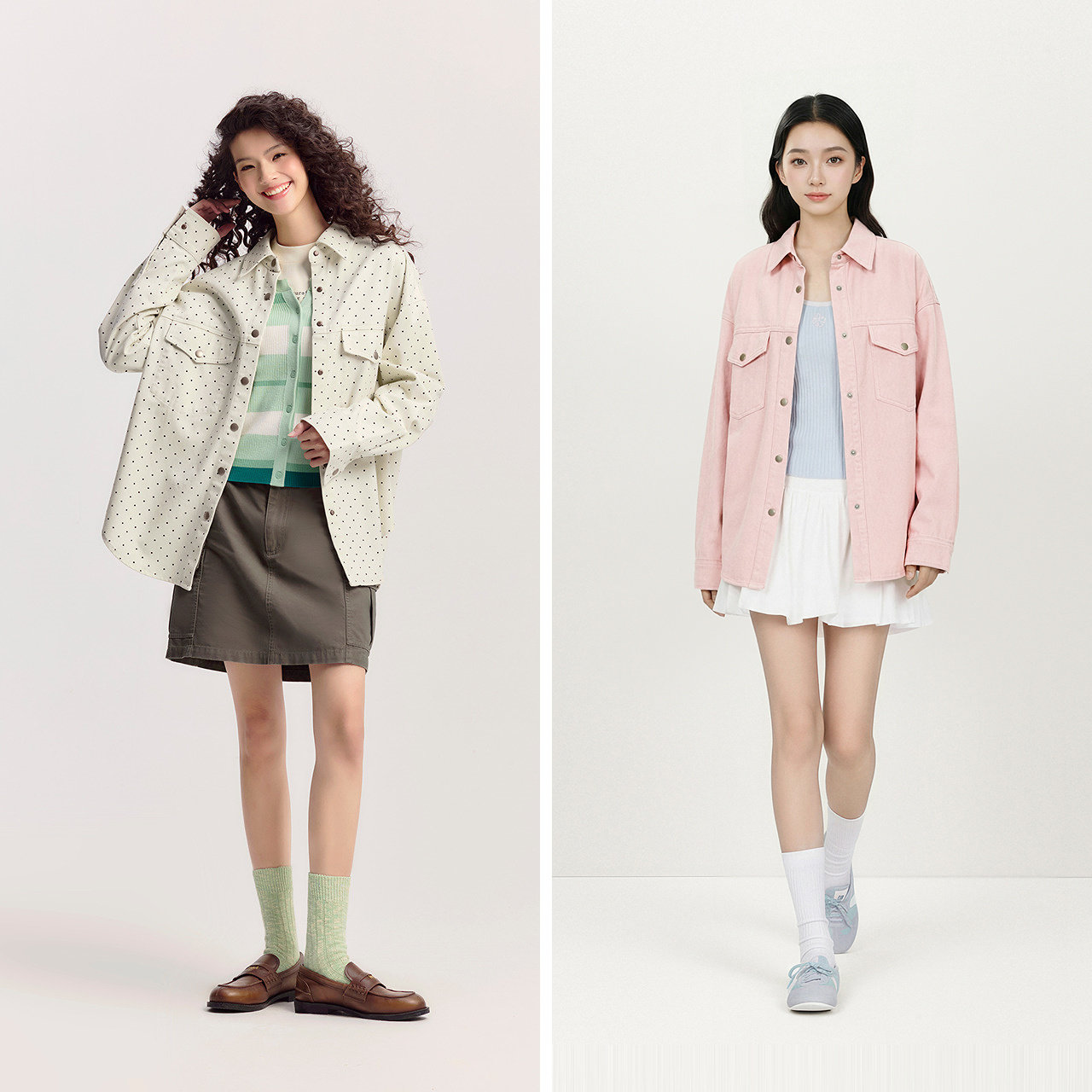 森马长袖衬衫女大翻领雪纺衬衣短背心俏皮可爱春季宽松两件套气质