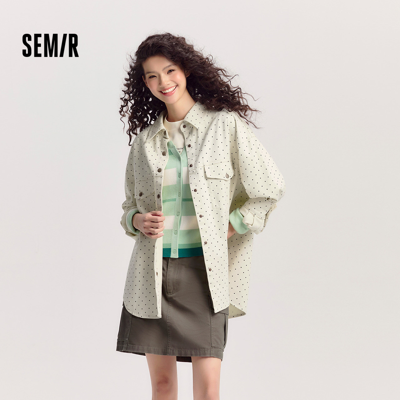 森马长袖衬衫女春季中长款落肩oversize磨毛复古简约盐系慵懒衬衣