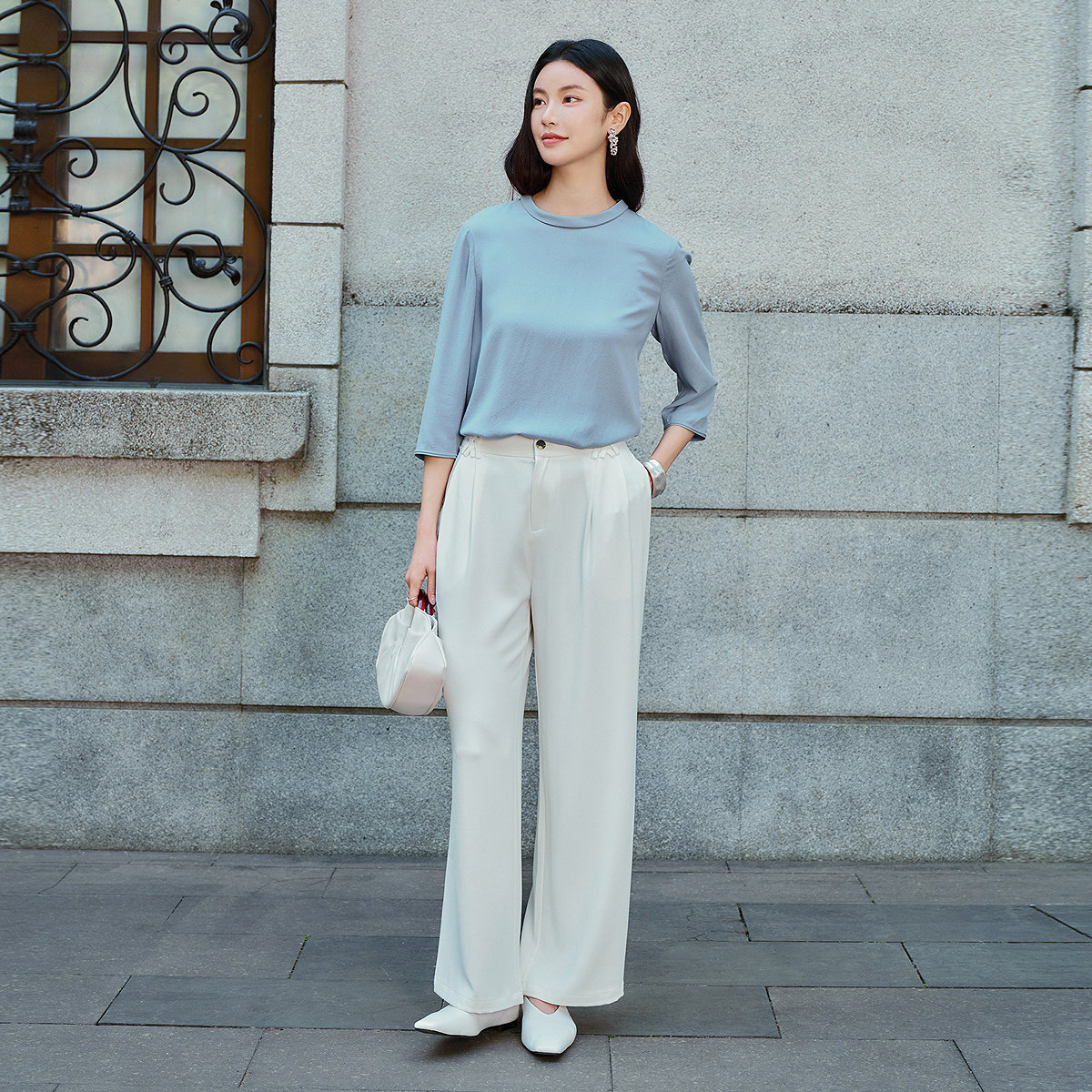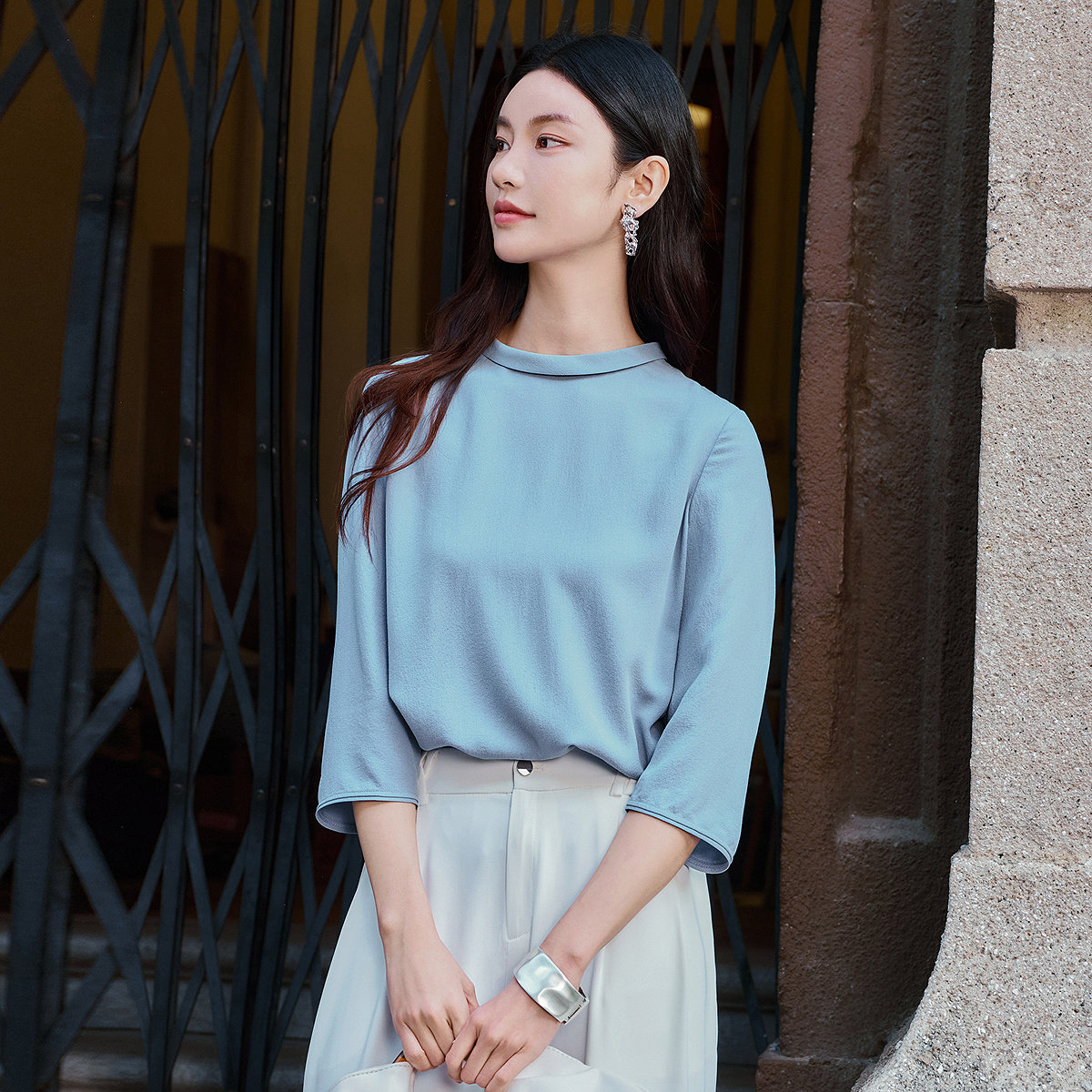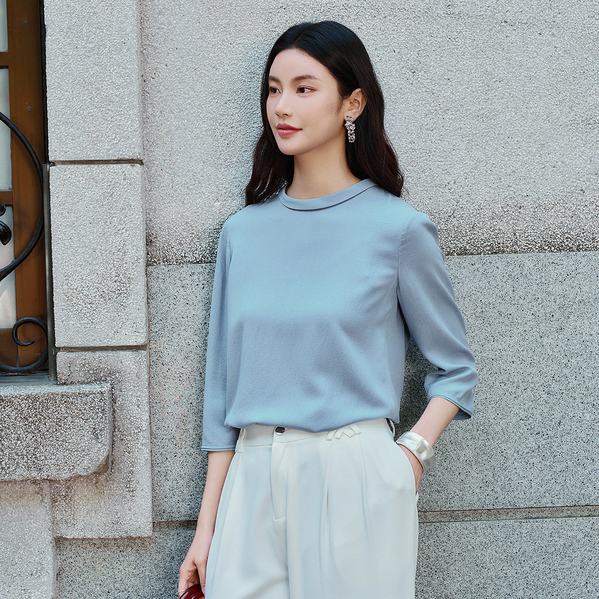 FINITY菲妮迪雪纺衫2026年春季新款100%桑蚕丝圆领轻盈雪纺上衣女