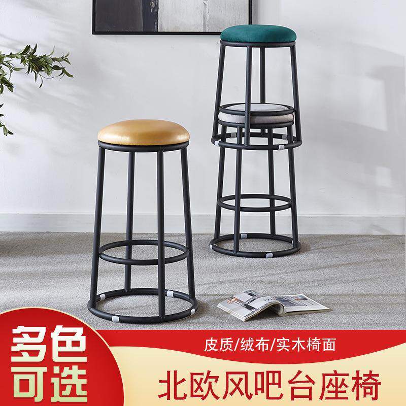 酒吧椅圆形椅子铁艺KTV吧凳手机店柜台前台凳子商用高脚凳吧台凳