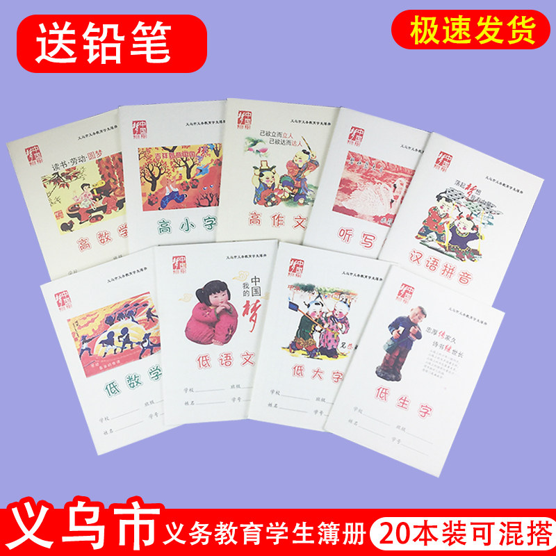 义乌市义务教育学生簿册加厚中国梦中小学练习本332K作业本低语文高数学小字汉语拼音16K英语练习作文美术簿