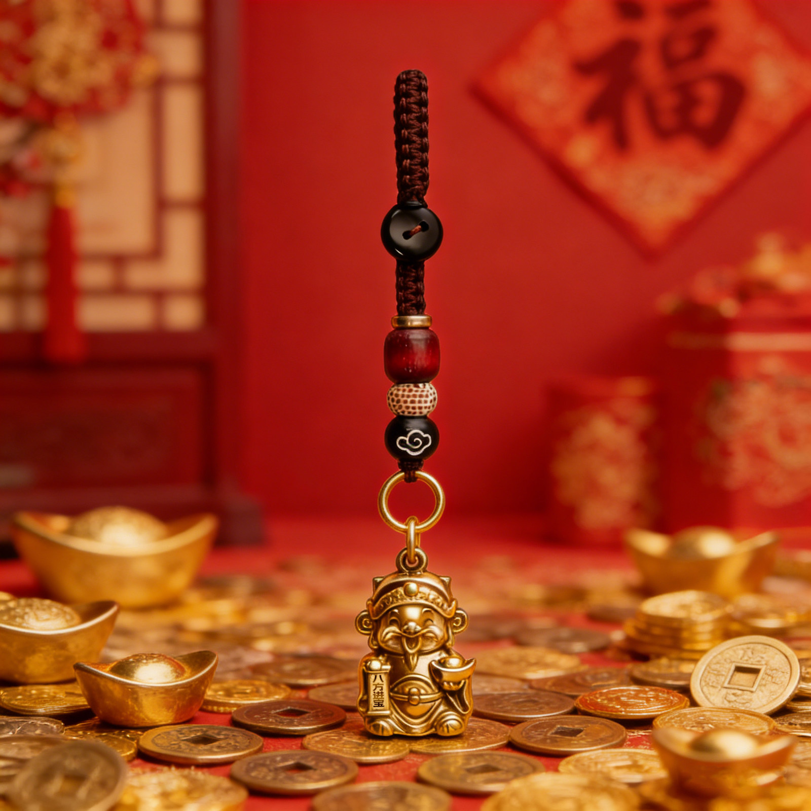 【八方来财】真黄铜财神爷挂件钥匙扣 越磨越亮