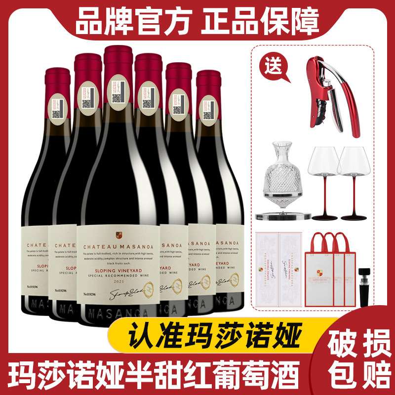 玛莎诺娅坡地红葡萄酒半甜型红酒750ml6支送酒具