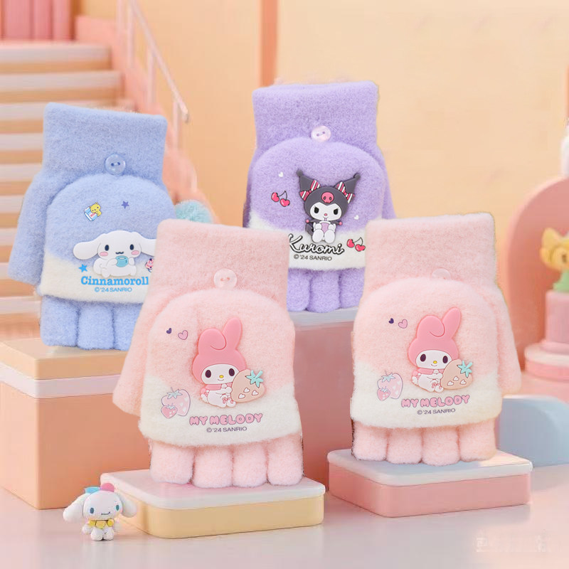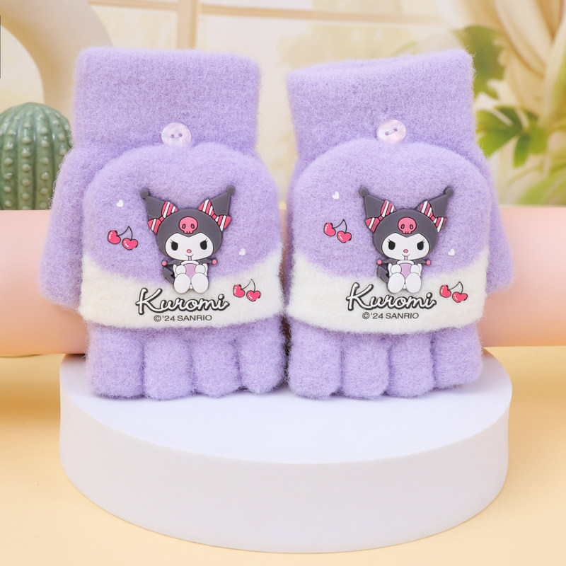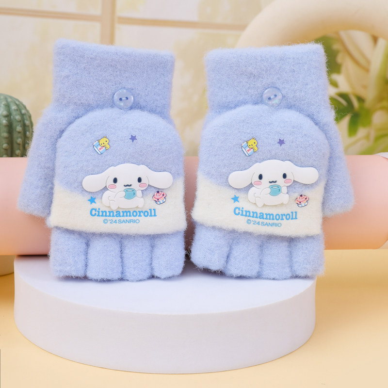冬季儿童手套可爱保暖女童男童半指针织学生翻盖库洛米写字五指