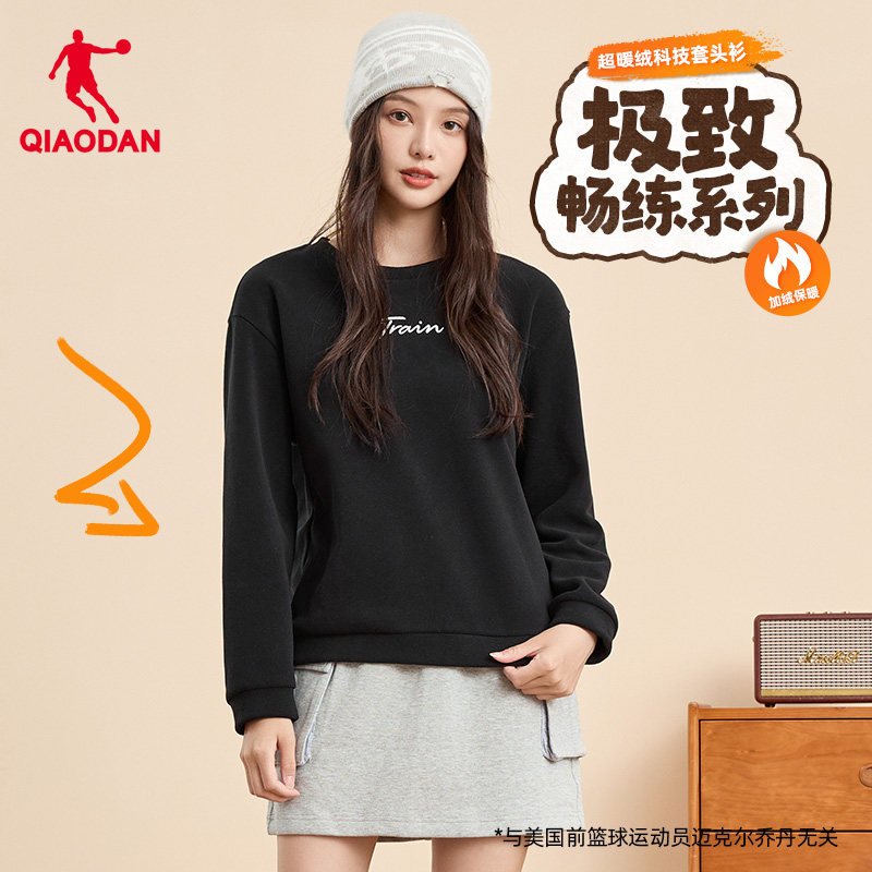 乔丹运动卫衣女冬季新款女士休闲透气透气宽松圆领加绒保暖上衣潮
