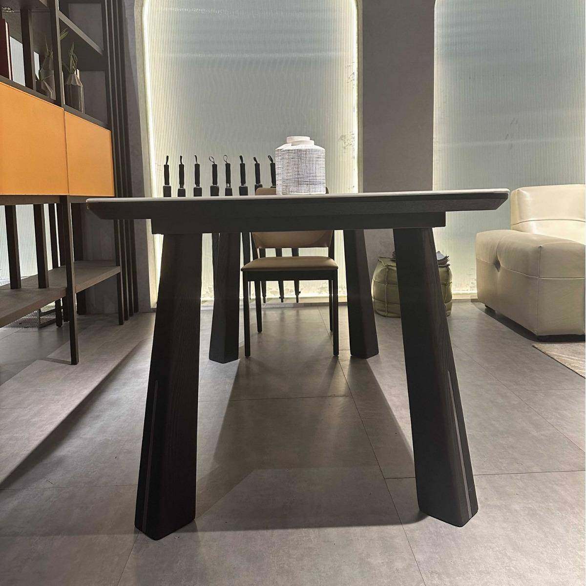 全实木腿超晶石餐桌高级感天然大理石微晶石彩晶石轻奢北欧吃饭桌