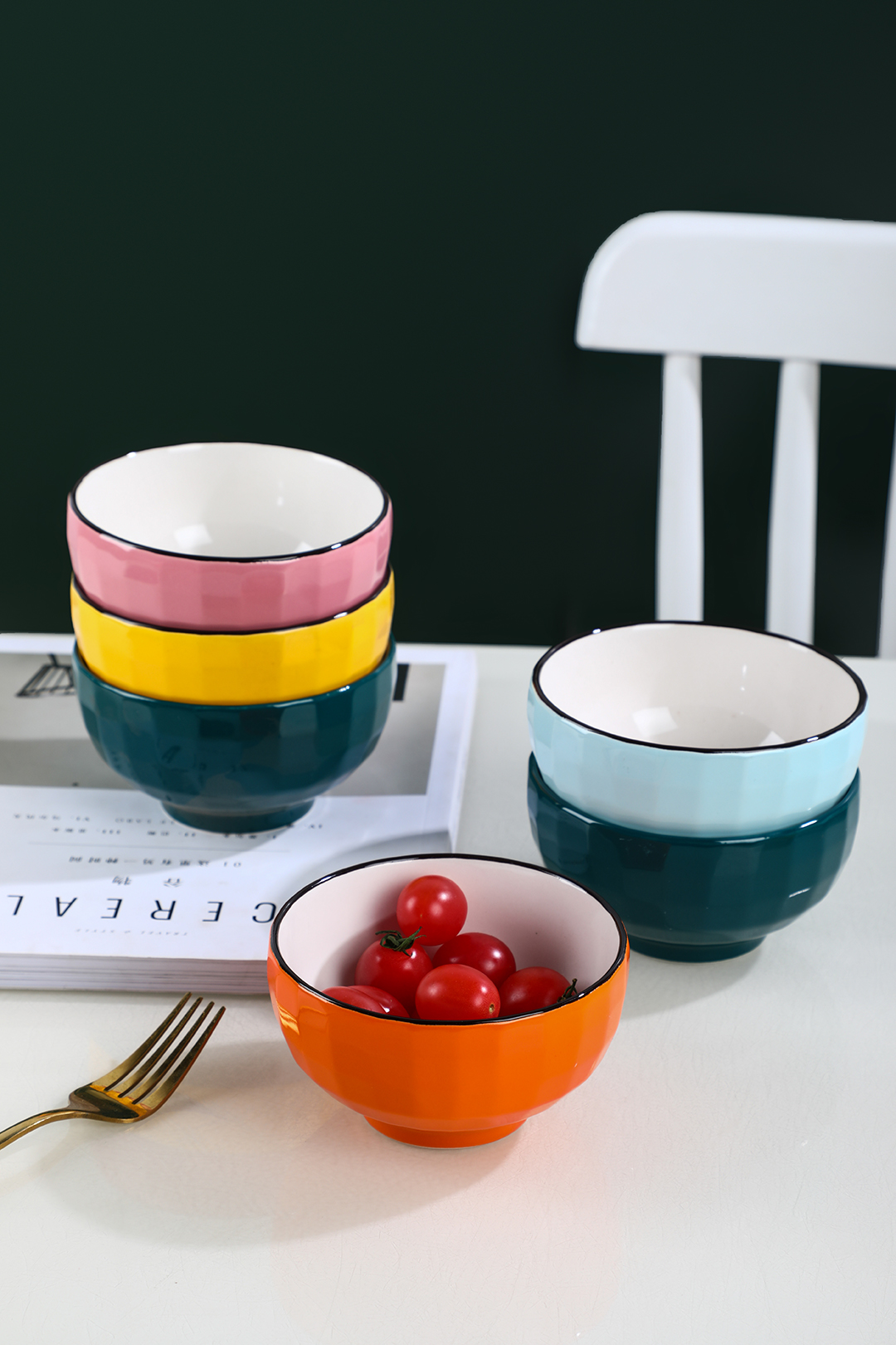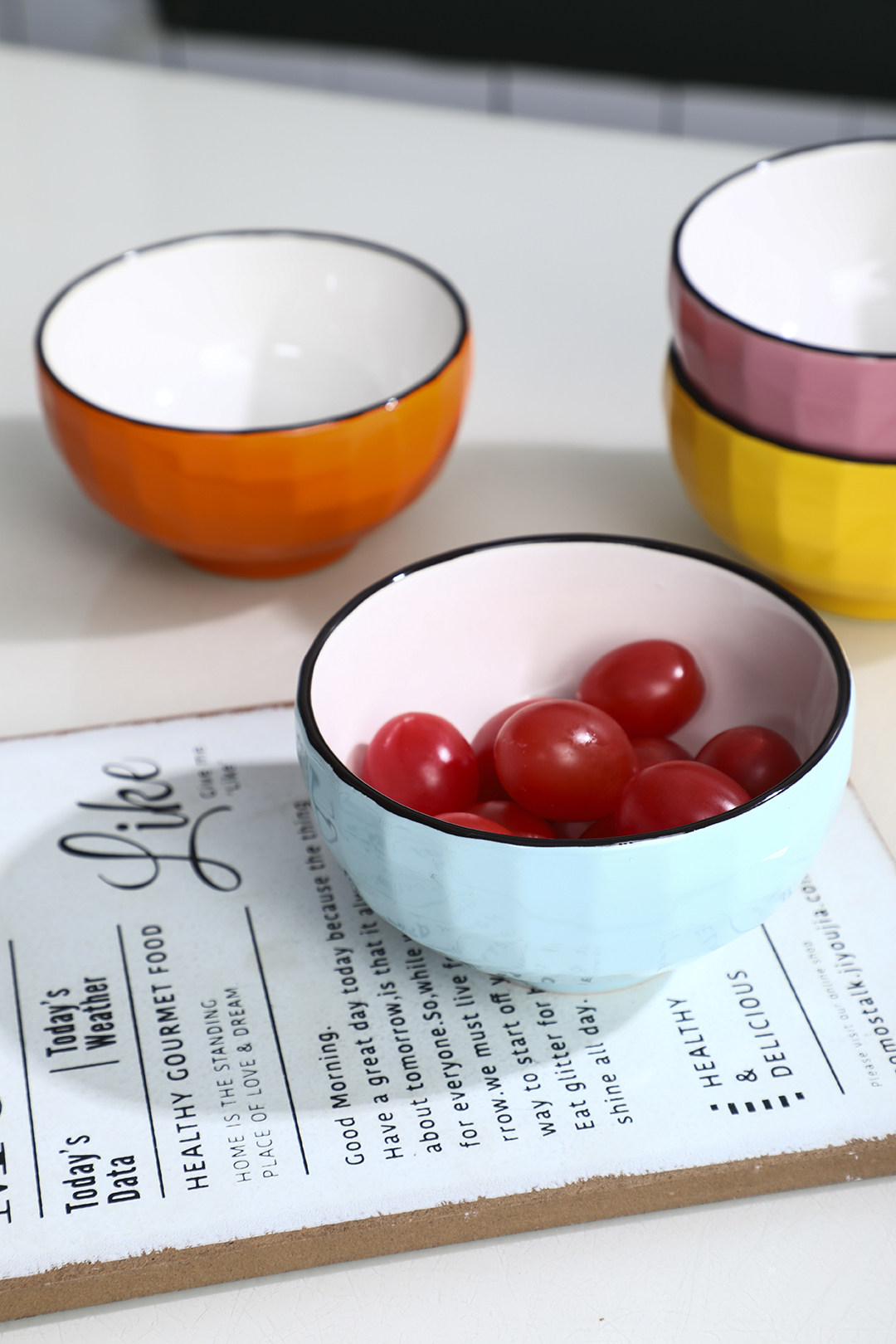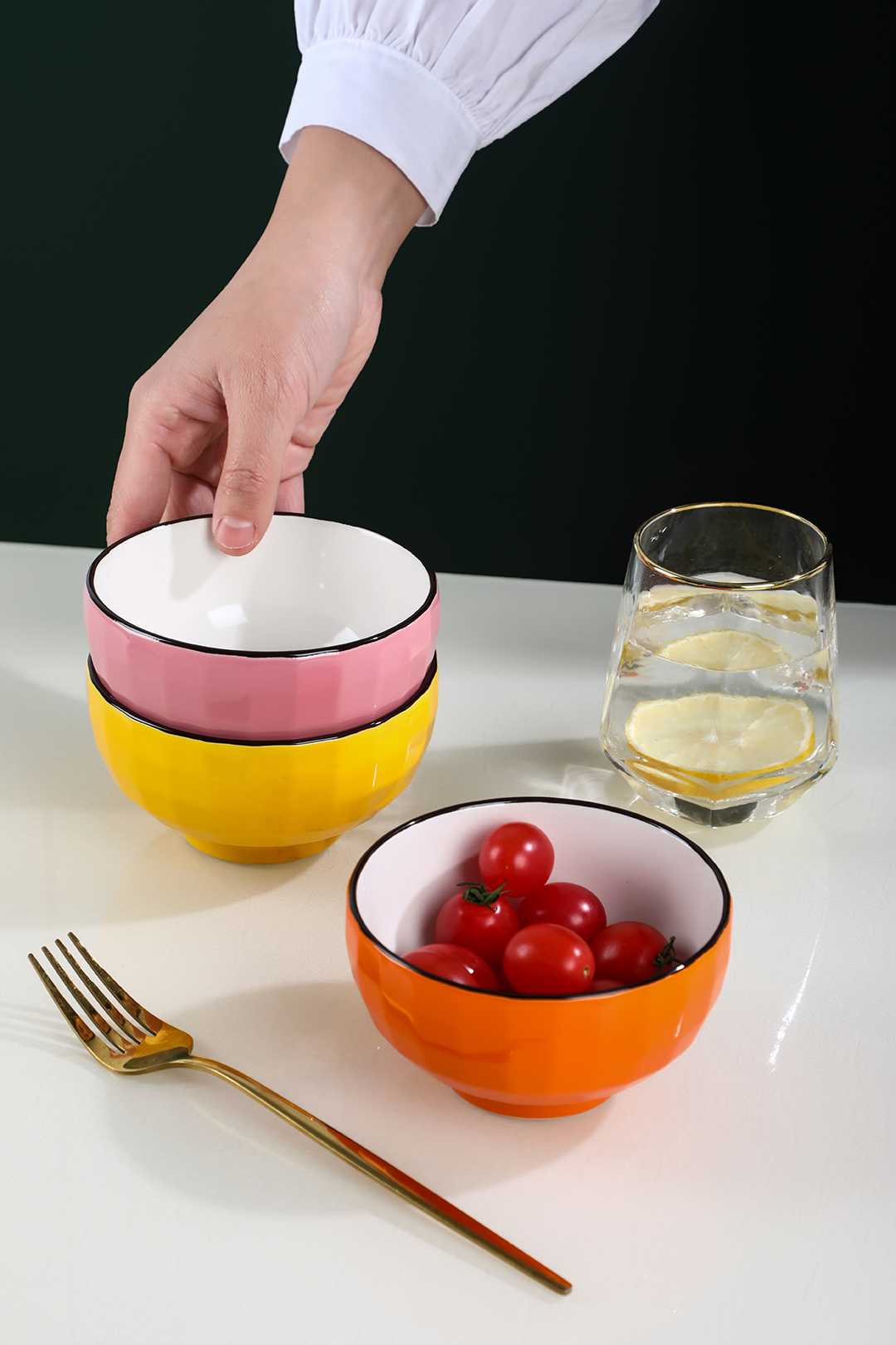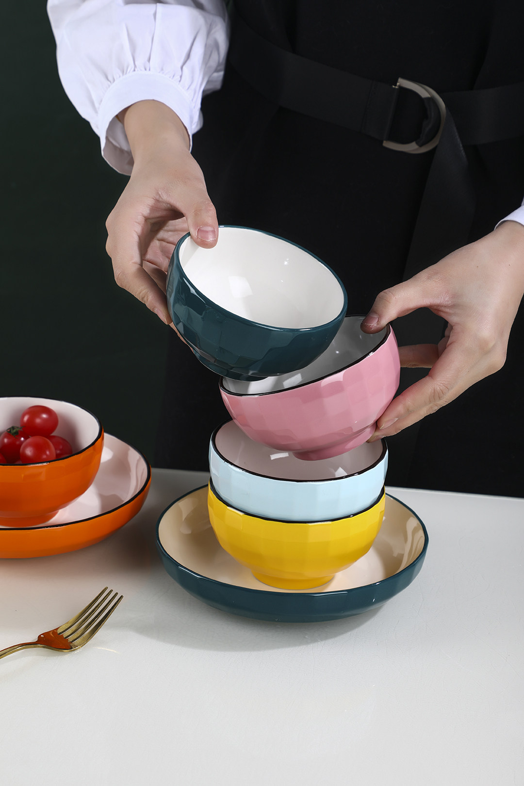 一人一色家庭分用碗 轻奢钻石家用碗纯色彩色陶瓷亲子碗5寸米饭碗