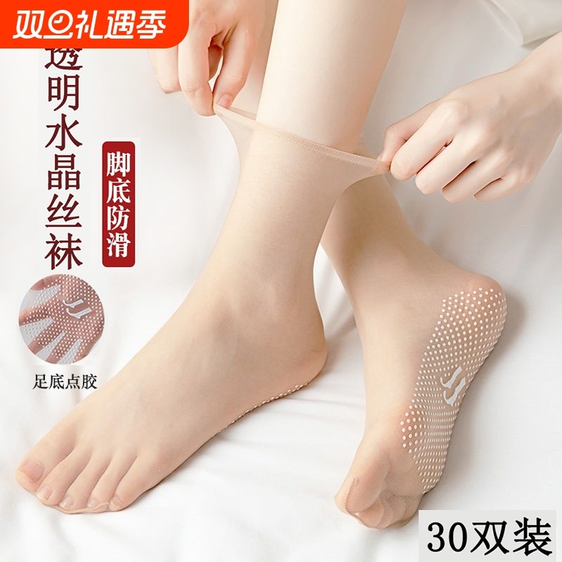 水晶丝袜女中筒袜防勾丝夏季超薄款防滑透明无痕肉色隐形短袜夏天