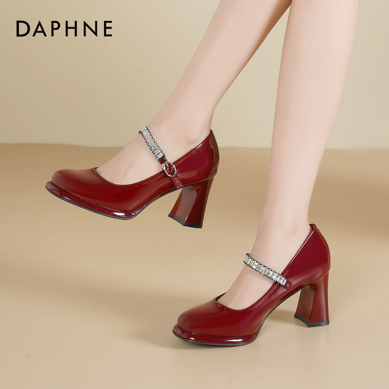 达芙妮高跟鞋女2026新款粗跟单鞋高级不累脚玛丽珍女鞋红色婚鞋女