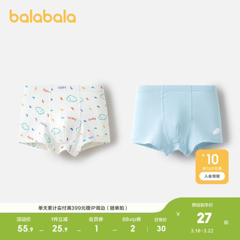 巴拉巴拉男童内裤平角儿童四角短裤亲肤不夹PP两条装舒适柔软萌趣