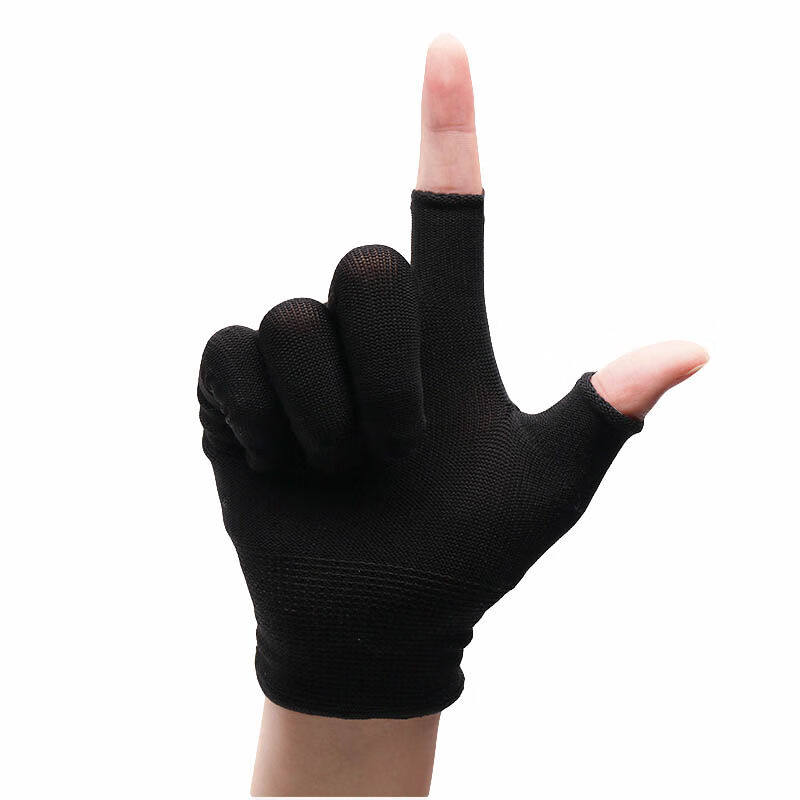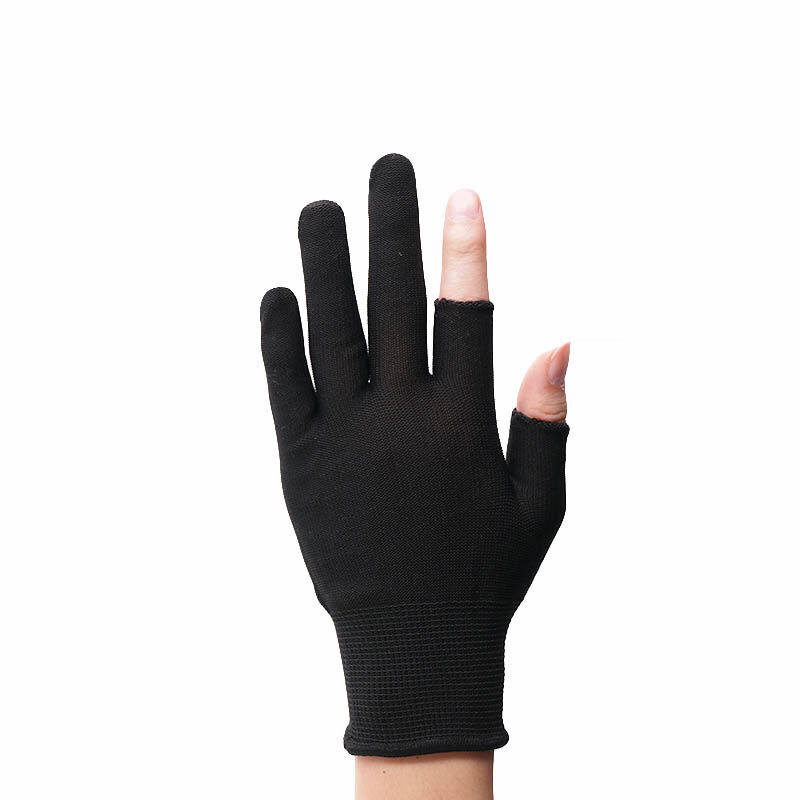 劳保佳劳保尼龙二半指手套防滑耐磨超薄劳保手套黑色10双装