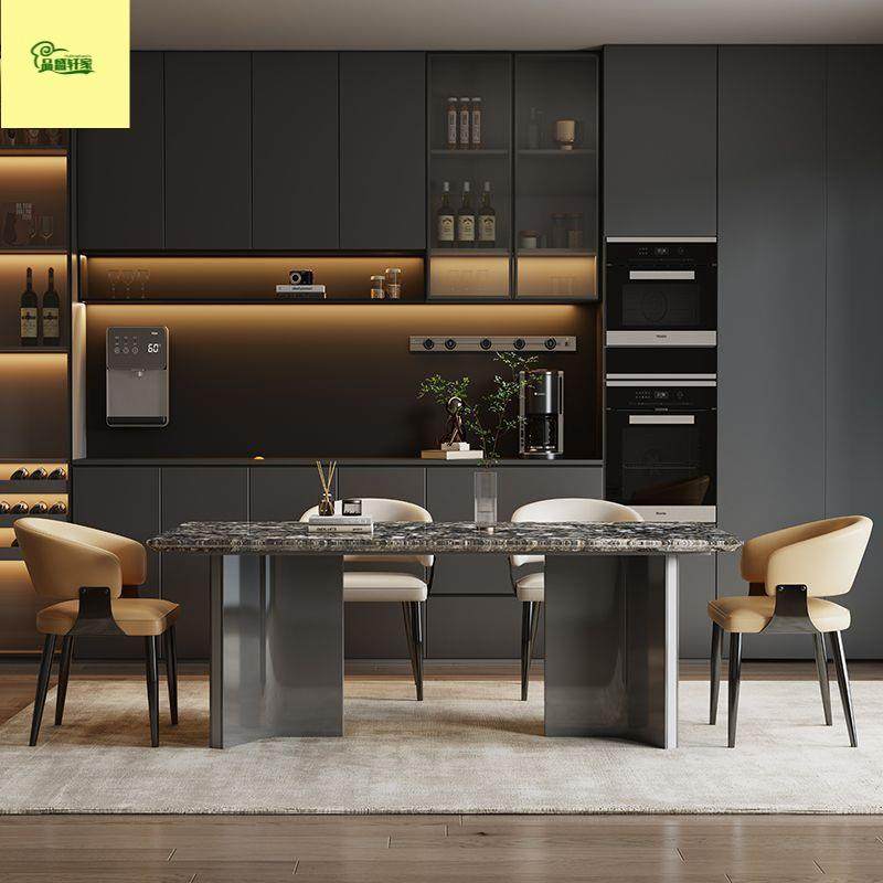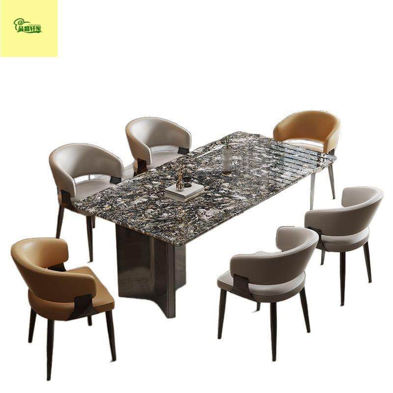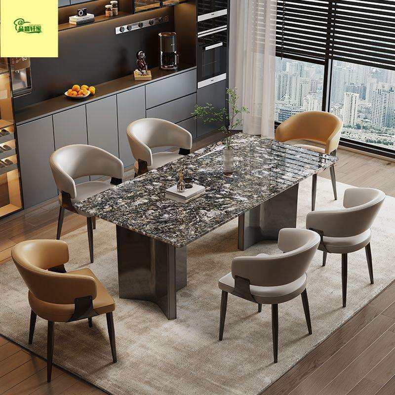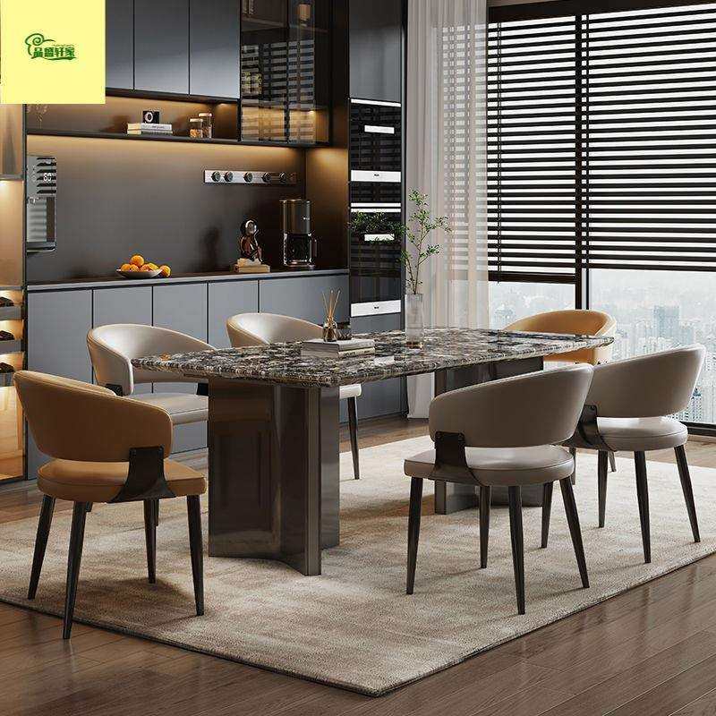 现代简约家用小户型意式大理石餐桌轻奢客厅饭桌长方形餐桌椅组合