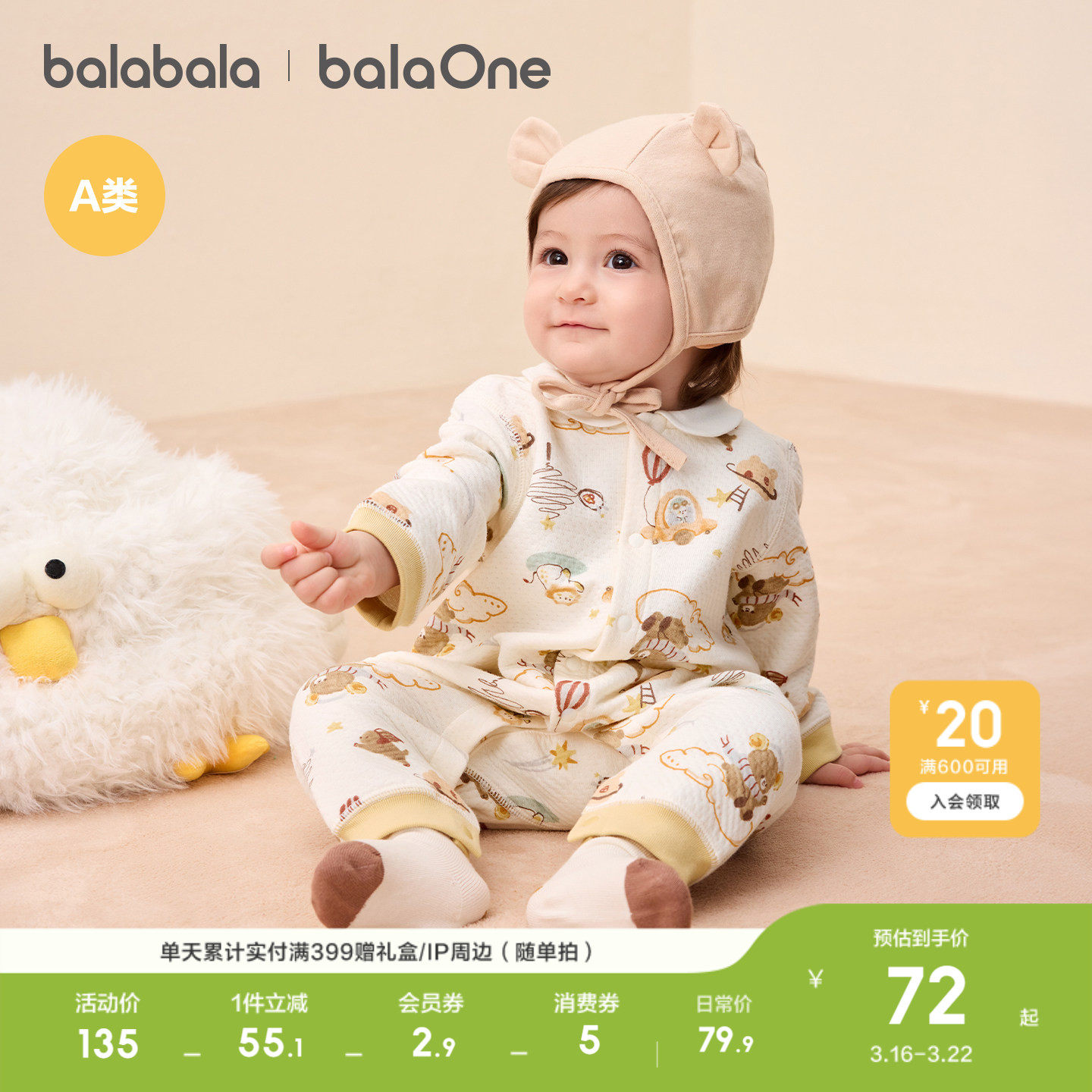 巴拉巴拉婴儿连体衣新生儿宝宝衣服满月爬服2026新款冬夹棉加厚萌