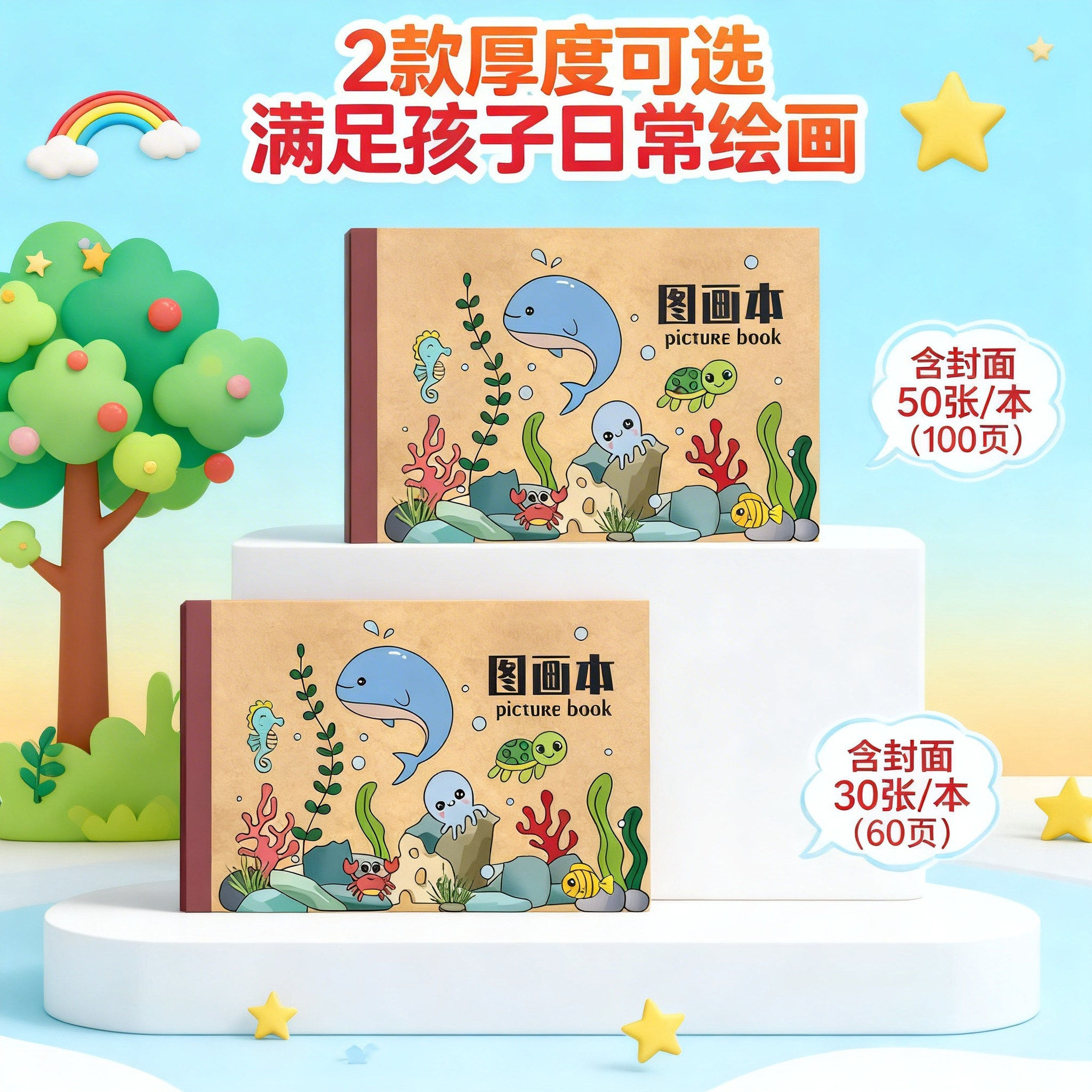加厚牛皮图画本涂鸦本空白微黄纸A4超厚儿童小学生本色画本素描本