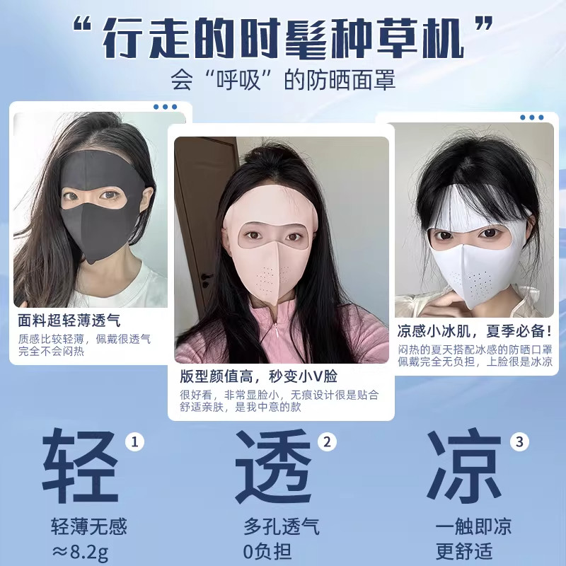 新款脸基尼全脸防晒面罩女夏季防紫外线冰丝透气护眼角口罩遮阳