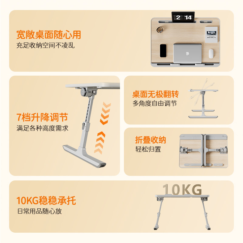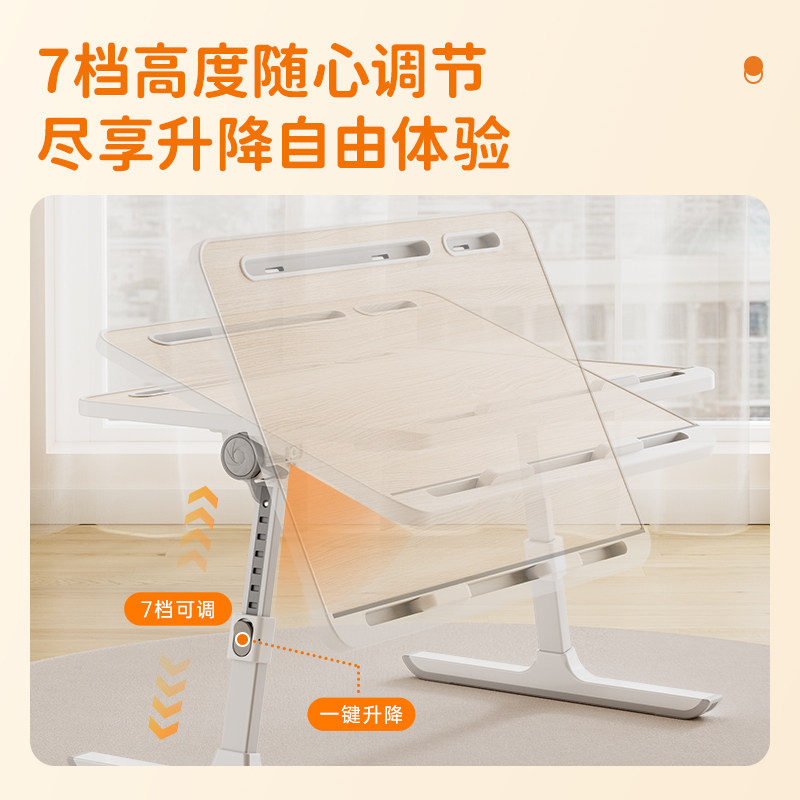 得力可升降床上小桌子笔记本电脑支架卧室飘窗桌家用懒人床上桌学生宿舍写阅读桌折叠餐桌儿童学习写字桌看书