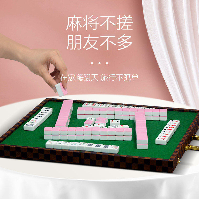 旅行麻将便携手搓牌家用宿舍露营户外收纳盒迷你玉石小麻将牌套装