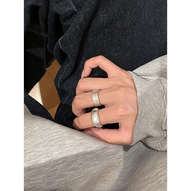 极简轻奢泥鳅背哑光银色戒指素圈宽面开口ins小众设计冷淡风