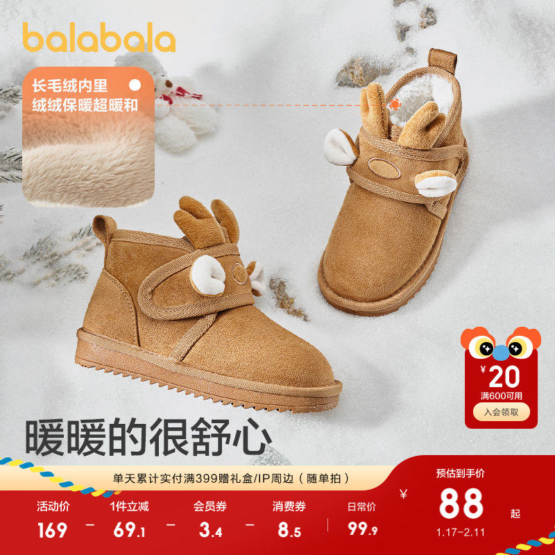 巴拉巴拉童鞋儿童雪地靴男童女童棉靴加厚加绒宝宝冬季靴子防泼水